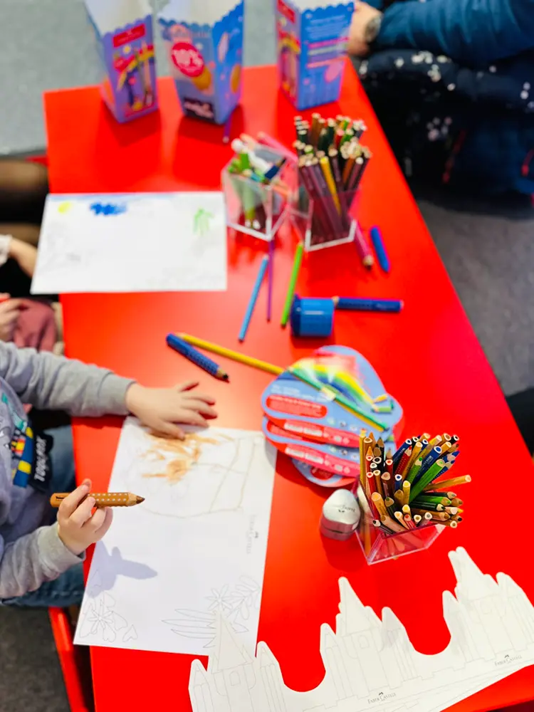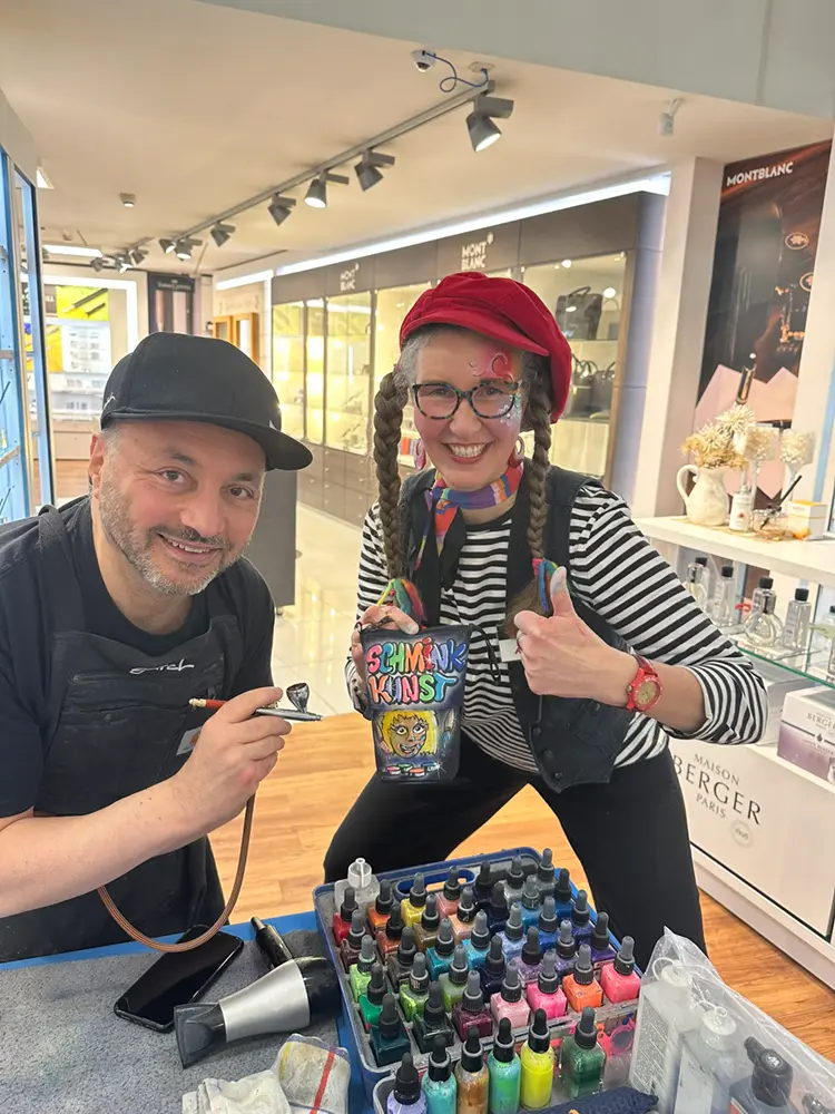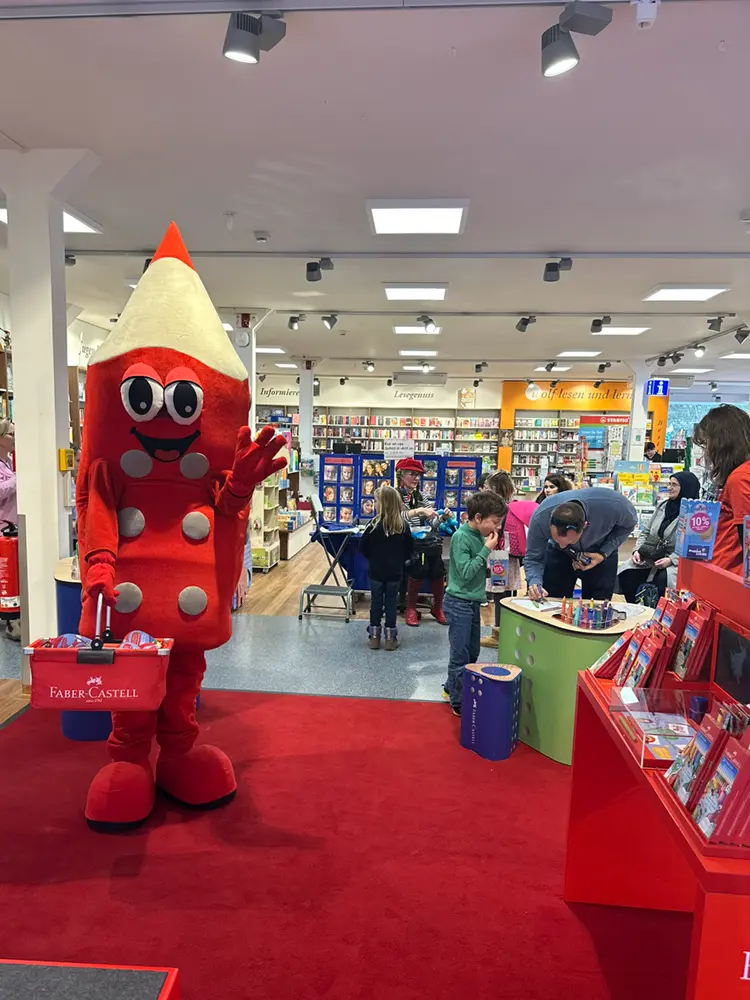 Mit strahlenden Gesichtern ließen sich die kleinen Gäste von Alexandra in kleine Kunstwerke verwandeln und nahmen mit Freude ihre bunten Luftballontiere entgegen. Ein besonderes Highlight: Ein Graffiti-Künstler personalisierte SATCH Rucksäcke und Mäppchen und machte sie zu echten Unikaten! Das Faber-Castell Maskottchen „Grippi“ verteilte fleißig die neuen Stifte, und in der Schreiblernberatung von STABILO erhielten Eltern und Kinder wertvolle Tipps für einen erfolgreichen Schreibstart. Nach so viel Action konnten sich die Kinder mit einer Tüte Popcorn stärken – natürlich kostenlos!
